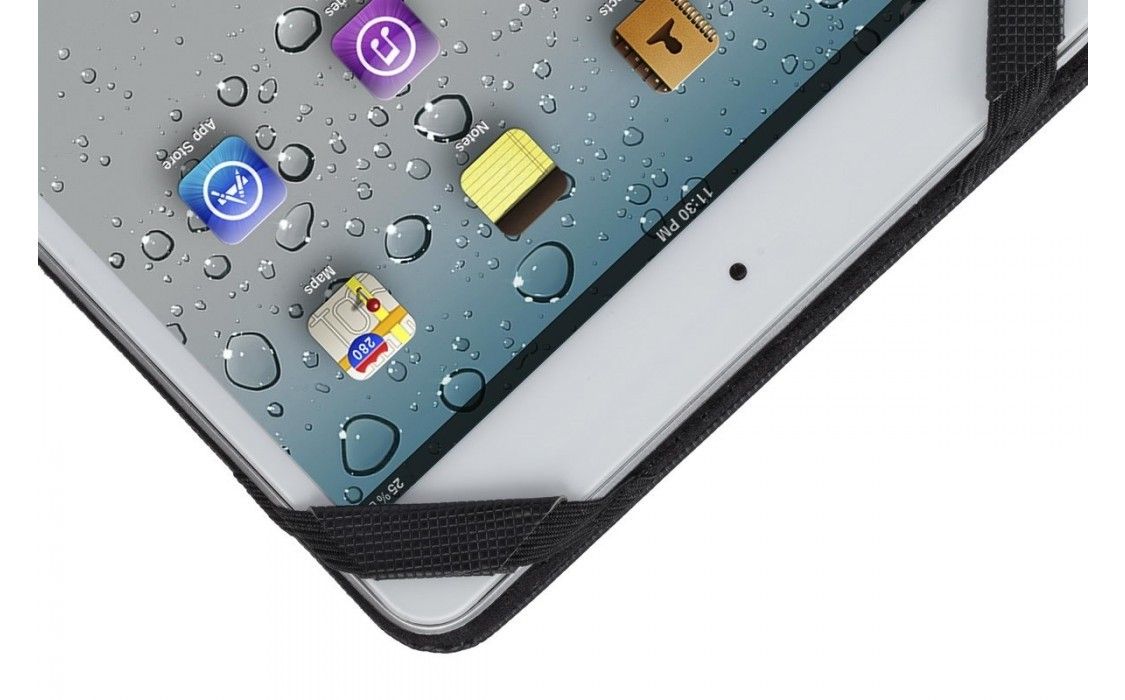 - Як кріплення використовується високоякісна еластична стрічка з протиковзкою накладкою. Легко встановлювати і виймати планшет