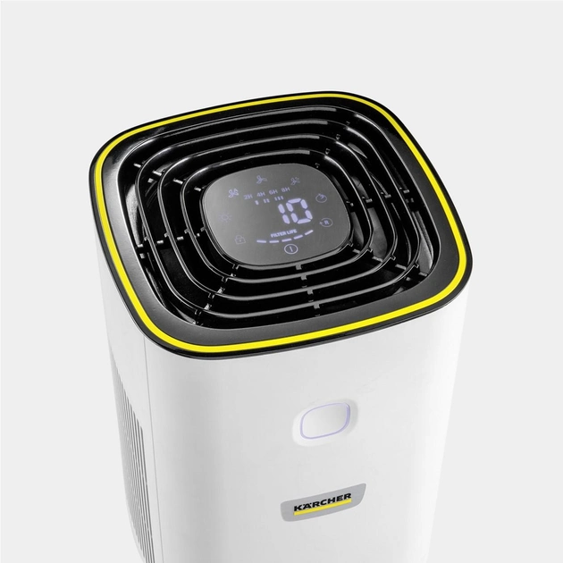 Чудовий очищувач повітря для маленьких приміщень, дитячих кімнат або окремих робочих місць: апарат Karcher AF 20, оснащений системою багатократної фільтрації, очищає повітря в них від алергенів, шкідливих речовин і збудників хвороб. Іншими його особливостями є наявність фільтра з активованого вугілля та алфавітно-цифрового дисплея, що відображає вміст домішок (часток класу PM2,5 мкг/м³), температуру та відносну вологість повітря, а також колірного індикатора якості повітря. Крім того, очищувач повітря оснащено функцією таймера, захистом від дітей (функцією блокування), нічним режимом і дуже тихою роботою. Ефективність фільтрації частинок розмірами 0,3 мкм становить 99,95%. Очищувач повітря обладнаний також високоякісним лазерним датчиком для роботи в автоматичному режимі, коли його продуктивність автоматично підлаштовується до ступеня забрудненості повітря. Термін служби фільтрів становить близько 1 року (залежно від забруднення повітря та інтенсивності використання апарату).
