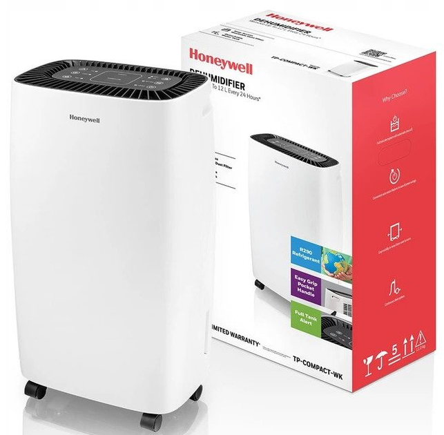 Honeywell розроблений із думкою про безперешкодне переміщення кімнатами та його використання всюди, де знадобиться швидке позбавлення від зайвої вологи. Пристрій оснащений високоякісними коліщатками, які не пошкоджують підлогу. Також має невеликі габарити та вагу, що робить його дійсно універсальним.