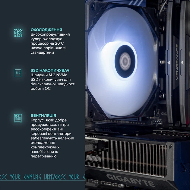 Геймер створює свій персоналізований, ігровий простір, де кожна деталь має особливе значення. Друк ваших улюблених героїв на корпусі, комплектуючі кращих виробників світу, безліч варіантів підсвітки - все це створить неймовірну атмосферу і ще більше занурить вас у світ гри.