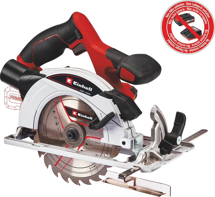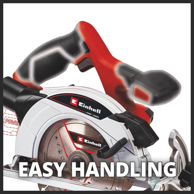 Глибина та кут пропилу акумуляторної ручної циркулярної пилки швидко та легко регулюються без додаткових інструментів. При куті 90° максимальна глибина пропилу становить 54 мм. Пильний диск можна нахиляти до 45°. Блокування шпинделя полегшує заміну пиляльних дисків. Акумуляторна дискова пилка сумісна з напрямною шиною Einhell, яка купується окремо, що полегшує виконання точних та акуратних пропилів.