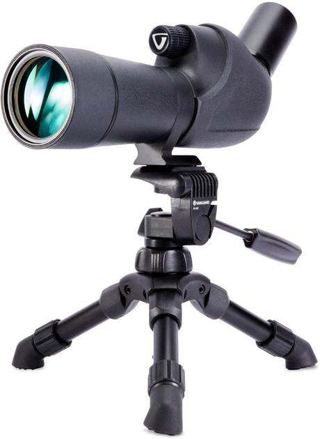 І насамперед — це комплектовання зі штативом. У той час як більшість навіть відомих виробників комплектують свої труби недорогими однотипними штативами з регулюванням в одній площині, підзорна труба Vanguard Vesta 560A 15-45x60/45 WP має преміальний двосекційний настільний штатив Vanguard VS-82 з висувною штангою. 2D голівка штатива регулюється за двома осями, має стандартну різьбу на чверть дюйма і пружний стопор для надійності кріплення. Завдяки цьому підзорна труба відразу ж готова до використання і відмінно підходить як для контролю мішеней та точності стрільби, так і для спостережень краєвидів з капота автомобіля. Зручним є те, що штатив компактно розміщений у загальному чохлі з підзорною трубою.
