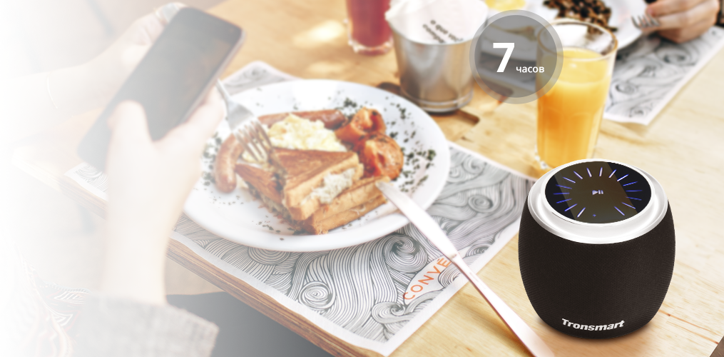 Разом з Tronsmart Jazz Mini створіть унікальний музичний простір простим рухом. Для управління цією портативної акустикою не потрібні кнопки. За допомогою великої сенсорної панелі можна перемикати треки, призупиняти або відновлювати програвання і навіть приймати дзвінки.