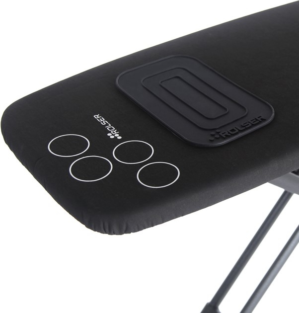 Дошка для прасування Rolser K-Surf Black Tube Negro (K07002-1023) - інноваційний дизайн та широкий функціонал з турботою про природу. Виготовлена із переробленого технічного полімеру з додаванням металевих мікрочастин. Перфорована основа робочої поверхні запобігає утворенню конденсату та підвищує стійкість до впливу високої температури. Модель регулюється по висоті в одинадцяти положеннях і обладнана автоматичним фіксатором. Сталеві ніжки з антикорозійним покриттям чорного кольору мають пластикові накладки, які запобігають ковзанню та зменшують шум. Чохол дошки виконаний зі стовідсоткової бавовни з флісовою підкладкою та спеціальним захисним покриттям. Дошка для прасування Rolser K-Surf Black Tube Negro (K07002-1023) комплектується окремою силіконовою підставкою під праску.