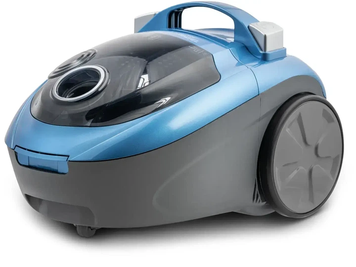 Об’єм мішка – 2,5 л, що зменшує необхідність його частого очищення під час прибирання.Гумові колеса захищають підлогу від подряпин, а спеціальна щітка для паркету дозволяє дбайливо доглядати за делікатними поверхнями. Елегантний синій колір додає пристрою сучасного вигляду.