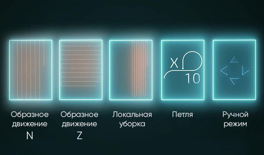 Робот прибирає в 5 етапів: зволожує, чистить, натирає, очищає й сушить. Ця технологія допомагає без зусиль мати професійні результати. На вибір ви маєте 5 режимів: N-подібний рух, Z-подібний рух, петля (робот проходить одну й ту саму ділянку 10 разів), локальне прибирання певної ділянки та ручне прибирання.