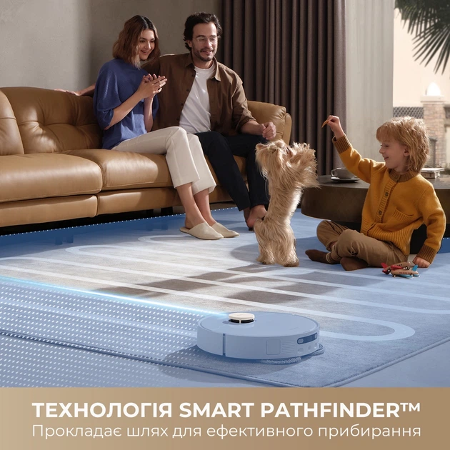 Робот підіймає насадки швабри на висоту до 10,5 мм, щоб захистити килими від намокання, забезпечуючи більш плавне та якісне прибирання.