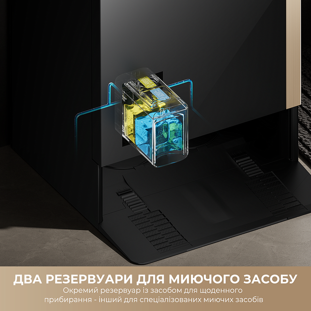 Більше не потрібно обирати один універсальний засіб для всієї квартири. Конструкція з двома баками DuoSolution дає змогу використовувати два різні розчини одночасно. Наприклад, в одному баку може бути антибактеріальний засіб для кахлю у ванній та на кухні, а в іншому - спеціальний віск для живлення та блиску натурального дерева у вітальні. Робот автоматично дозує потрібний засіб, орієнтуючись на карти приміщень. Ваше підлогове покриття служить довше, адже тепер догляд враховує тонкощі.