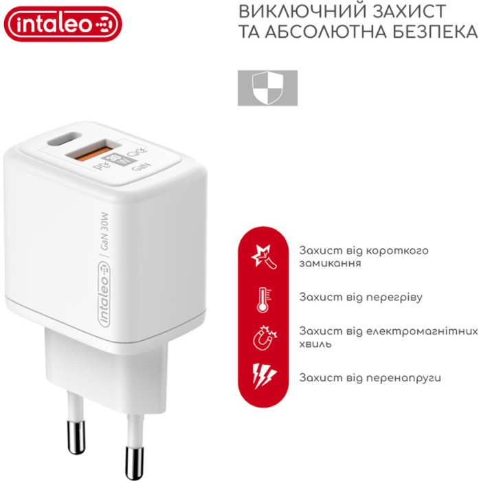 Мережевий зарядний пристрій Intaleo TCG30GAN 30W GAN USB-C PD+USB-A QC 3.0 White
