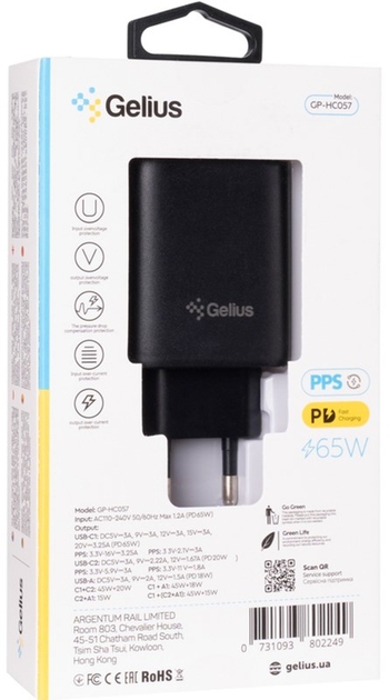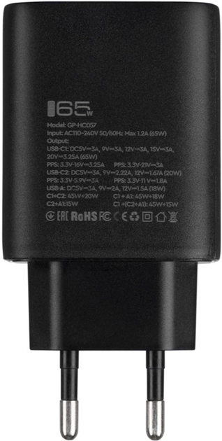 Мережевий зарядний пристрій Gelius Power Pulse GP-HC057 65W USB+2Type-C (QC/PD/PPS) (2099900965241) Black