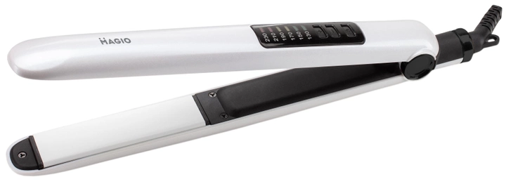 Щипці для волосся MAGIO MG-586 мають дві ключові особливості — це зручність і елегантність. Модель виготовлена в надзвичайно стильному корпусі та має легку вагу. Абсолютна простота — ключова особливість моделі. Матеріал поверхні робочих пластин — двошарова кераміка, що впливає не тільки на кінцевий результат зачіски, але й на здоров'я волосся. Такі пластини завдають найменшої шкоди, швидко та рівномірно нагріваються, легко ковзають по волоссю й запобігають електризації. Максимальна потужність приладу — 40 Вт, що сприяє швидкому нагріванню приладу. А за допомогою електронного типу керування, можна вибрати оптимальну температуру для різних типів волосся. Петелька для підвішування і блокування ручки створюють додаткову зручність у використанні. Вишенькою на торті є плавальна пластина, яка максимально знижує ризик пошкодження волосся.