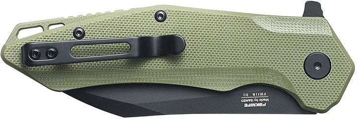 Ніж Ganzo FH31B це зручний інструмент для туризму та активного проведення часу. Цей ніж є універсальним, добре підійде для поїздок на природу, а також підсобного використання в міському середовищі. В основі леза - сталь марки D2, а ручка виготовлена з використанням накладок із G10. Клинок різновиду wharncliffe (ворнкліф) - форма комфортна в різних цілях. Ніж стане в пригоді в точних роботах, наприклад, для розрізання паперу. Він акуратно і педантично справляється з усіма покладеними на нього завданнями. Із суто практичного погляду найбільша перевага леза в тому, що воно розрізає матеріал, задіюючи всю довжину ріжучої кромки.