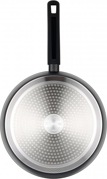 Спеціальний сталевий індукційний диск у донній частині сковороди дає можливість її використання на всіх різновидах плит, включно з індукційними, інфрачервоними та склокерамічними.