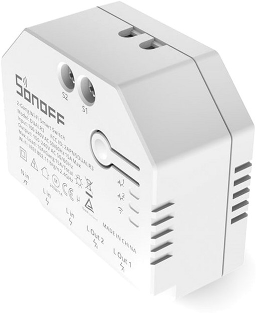 SONOFF DUALR3 – універсальний WiFi модуль подвійного реле з можливістю віддаленого керування з мобільного телефону або за допомогою голосових команд (Amazon Alexa чи Google Assistant). Як і будь-який інший пристрій від компанії SONOFF, цей модуль може використовуватися як самостійний пристрій або бути інтегрованим у вже існуючу мережу інтелектуальних пристроїв SONOFF.
