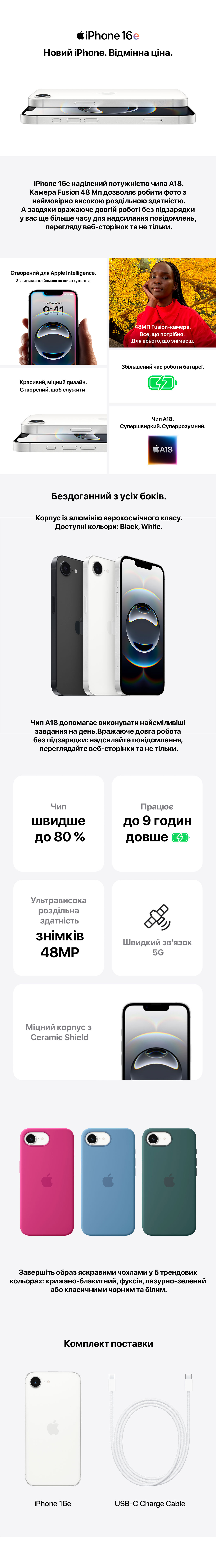 Смартфон Apple iPhone 16e 256GB (MD1W4SX/A) White