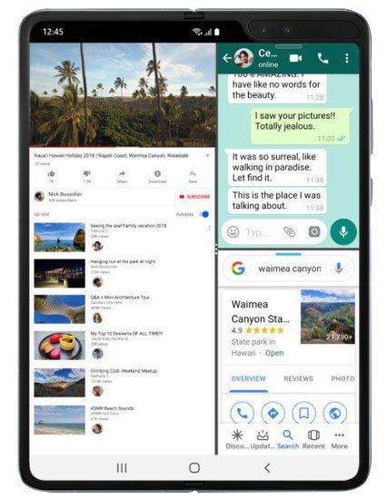 Екран Galaxy Fold дарує своєму володареві неймовірні можливості багатозадачності. Поєднуйте будь-які заняття й користуйтеся одночасно трьома активними вікнами - вперше в історії смартфонів Galaxy. Переміщуйте та змінюйте розмір вікон одним простим рухом. Щоб сфокусуватися на додатку, просто натисніть, утримуйте й перемістіть його ліворуч. А коли ви отримаєте повідомлення, просто перетягніть його вниз - і воно розкриється у новому вікні.4