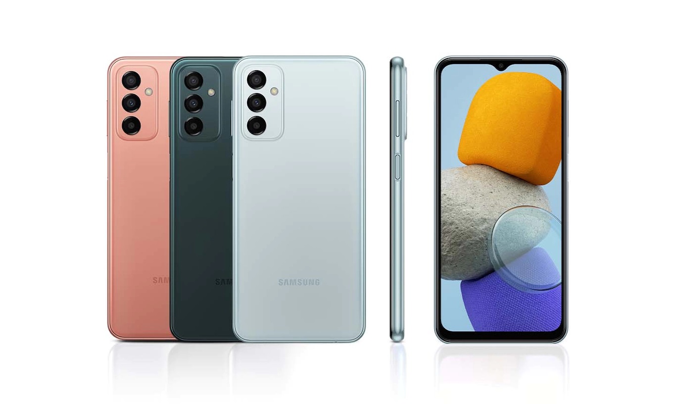 Galaxy M23 5G відрізняється якісним дизайном з м’якими заокругленими краями та простою центральною рамкою, у якій розміщується мінімалістична камера. M23 5G представлений у блакитному, темно-зеленому та помаранчево-мідному кольорах, тому ви можете вибрати варіант, що найкраще підходить до вашого повсякденного стилю.