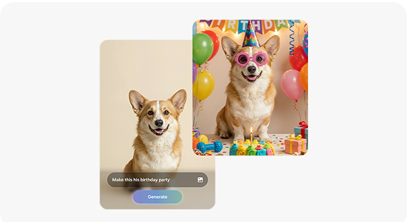 Редагуйте фото швидко й легко – з Galaxy AI достатньо лише кілька слів. Додавайте об'єкти, як-от аксесуари, на фото вашого улюбленця, просто описавши бажані зміни звичайною мовою. І Galaxy AI втілить вашу ідею за лічені хвилини.