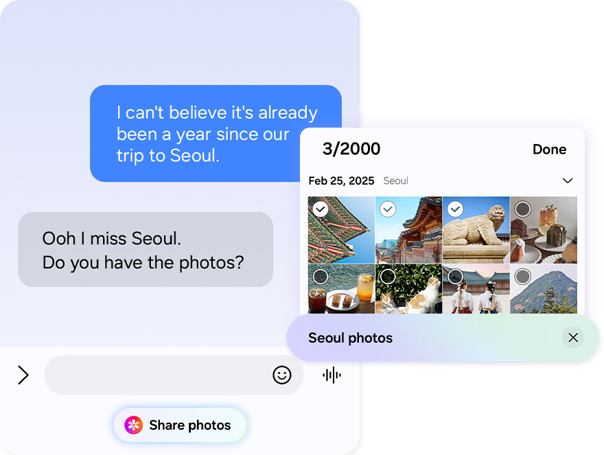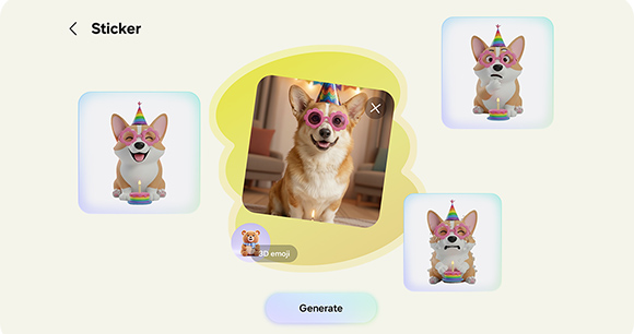 Відкрийте Creative Studio й отримайте окремий простір для створення наборів стикерів. Поєднуйте ескізи або фото з текстом відповідно до вашого задуму. Завдяки простому текстовому опису або приблизному ескізу Galaxy AI створює готові зображення. Потім ви можете додати набір стикерів до своєї клавіатури або поділитися ним із друзями.