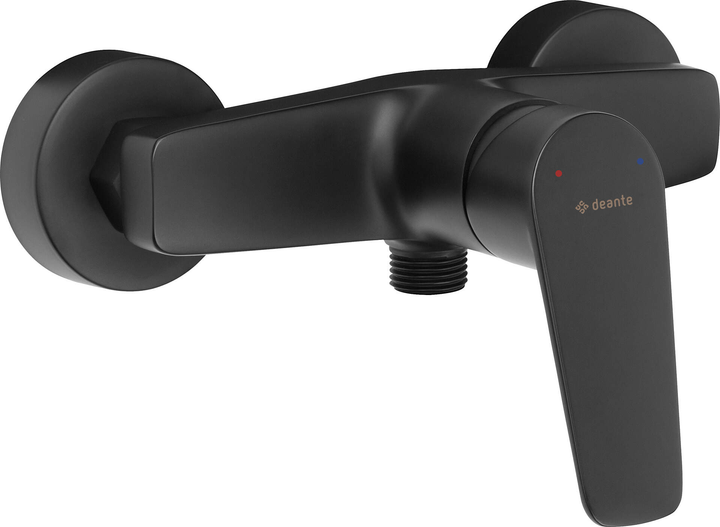 Одноважільний настінний змішувач для душу Jasmin BGJ N40M від Deante, виготовлений з високоякісної латуні з покриттям чорного кольору, оснащується відведенням для приєднання душового шланга під діаметр 1/2" , і встановлюється на 2 отвори за допомогою ексцентричного з'єднання під діаметр 1/2".