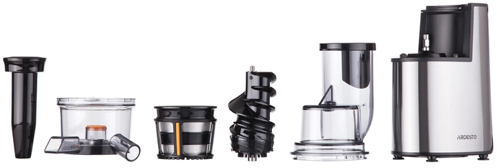 Ardesto JEG-1330SL - шнекова соковижималка з компактними габаритами, що дозволить її використовувати навіть на маленьких кухнях. Має стильний, сучасний дизайн, благородія чому, відмінно буде виглядати на будь-якій кухні. Оснащена фільтром з нержавіючої сталі в циліндрі, трубка з випуску соку має протиковзке покриття. Електродвигун постійного струму з малою швидкістю стискання забезпечує більш високу вироблення соку і більш низький рівень шуму.