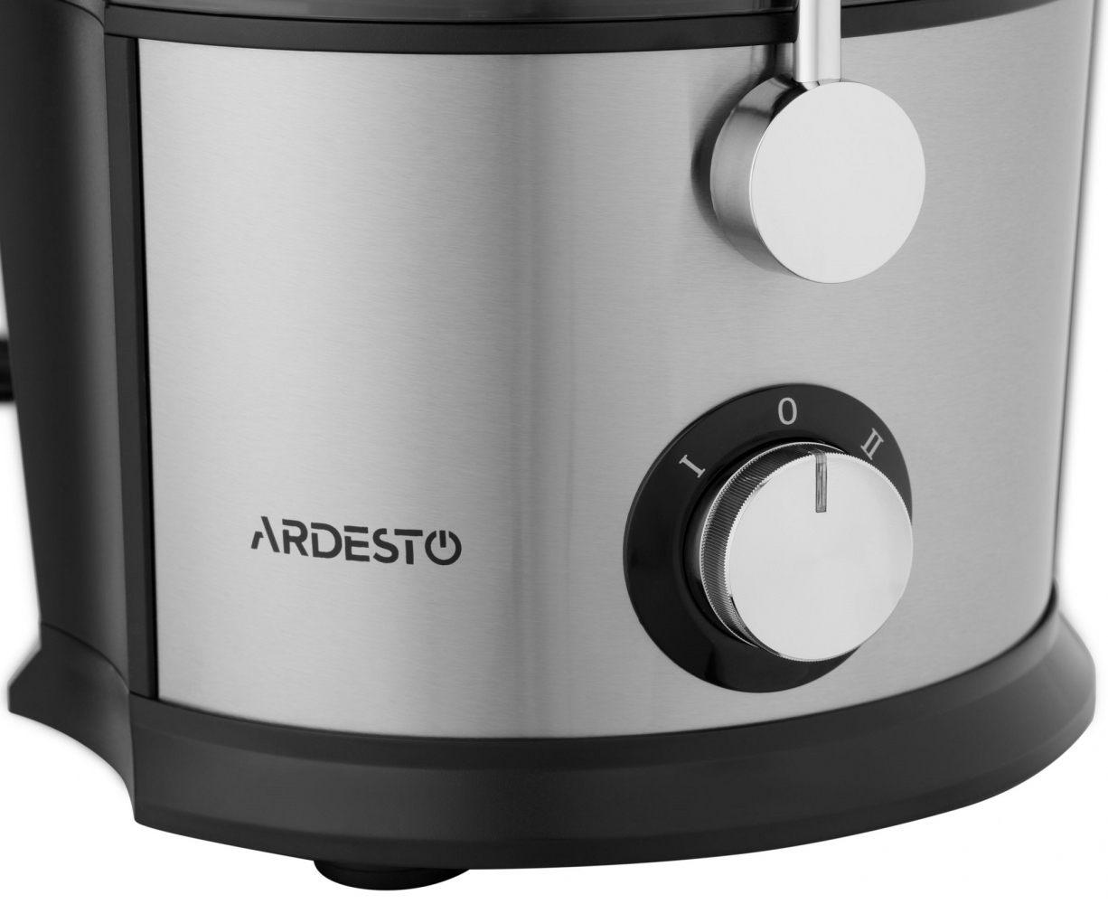 Зручність використання соковичавниці ARDESTO JEG-800 зумовлена кількома особливостями конструкції. Зокрема, аби пристрій непохитно стояв на поверхні, передбачено протиковзкі гумові ніжки. Задля безпеки модель оснащено додатковим запобіжним руків’ям і захистом від перегрівання двигуна.