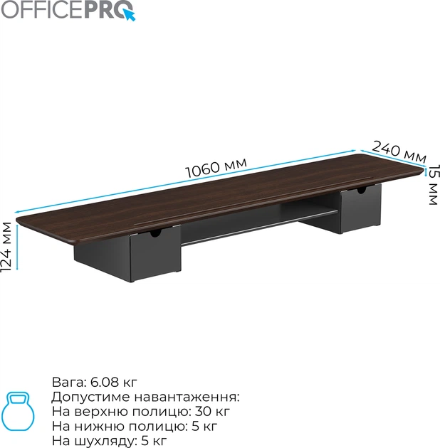 Підставка для монітора OfficePro Dark Wood/Black (MR177DW) є ідеальним рішенням для тих, хто прагне покращити ергономіку свого робочого місця. Ця підставка не тільки додає естетичну привабливість вашому столу, але й забезпечує оптимальну висоту розташування монітора, що сприяє зниженню напруги в шиї та плечах.