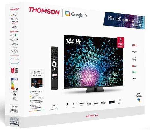 Перетворіть свою вітальню за допомогою Thomson Mini LED Google TV, розробленого для забезпечення приголомшливої візуальної якості, насиченого звуку та зручності розумних розваг в одному елегантному корпусі.