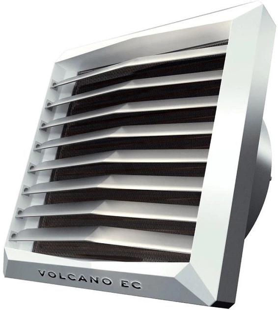 Volcano VR2 – водяний тепловентилятор, що поєднує потужність, надійність і сучасні технології. Пристрій забезпечує рівномірне поширення теплого повітря на відстань до 22 метрів по горизонталі. Металевий корпус із білим покриттям має клас захисту IP54, що зберігає ефективність навіть у запилених або вологих приміщеннях. Вентилятор змінного струму працює стабільно та майже безшумно – лише 56 дБ на відстані 5 метрів.