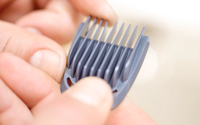 Використовуйте тример із технологією DualCut без гребінця, щоб отримати рівні, чіткі краї навколо бороди, шиї та лінії волосся.5 ударостійких гребінців