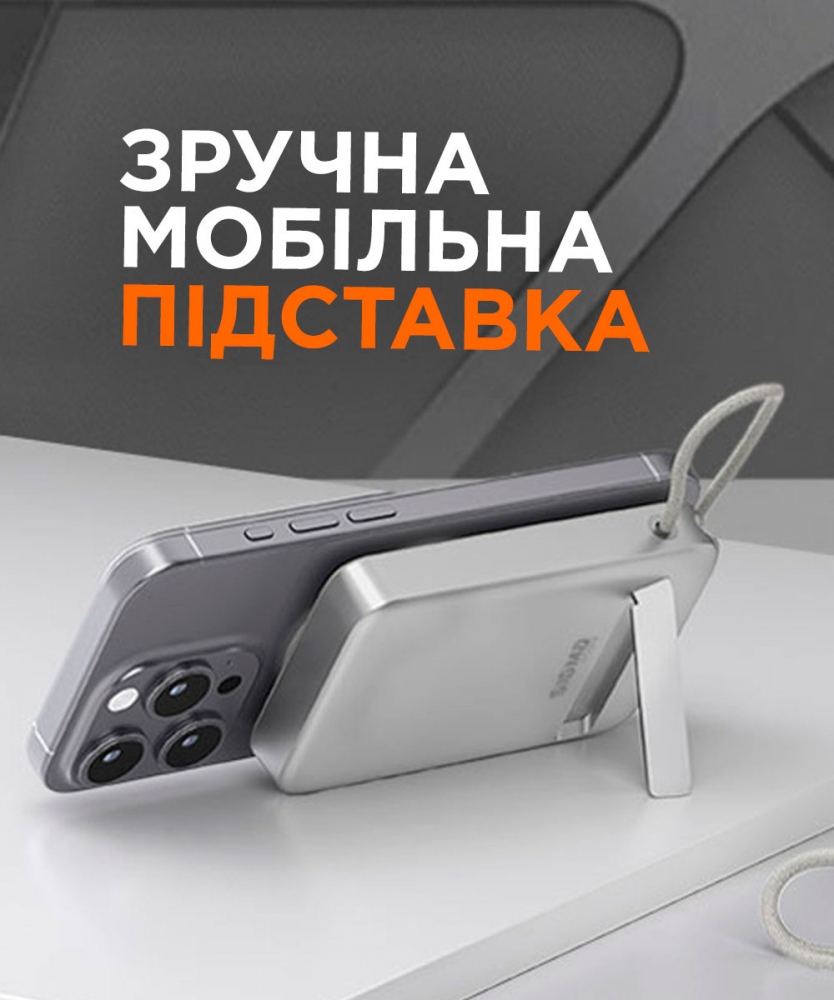 Для максимального комфорту пристрій оснащений відкидною підставкою. Ви можете розташувати смартфон на столі в портретному чи ландшафтному режимі, продовжуючи перегляд фільму, відеодзвінок або роботу, поки він бездротово заряджається.