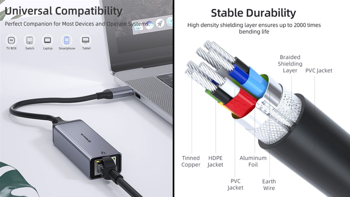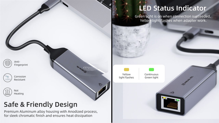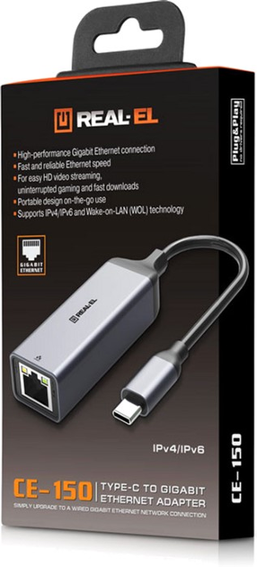 Адаптер REAL-EL CE-150 (Type C — Ethernet) призначений для використання з усіма пристосуваннями, що мають можливість приєднання за допомогою порту Type C і підтримують усі необхідні протоколи передавання даних.