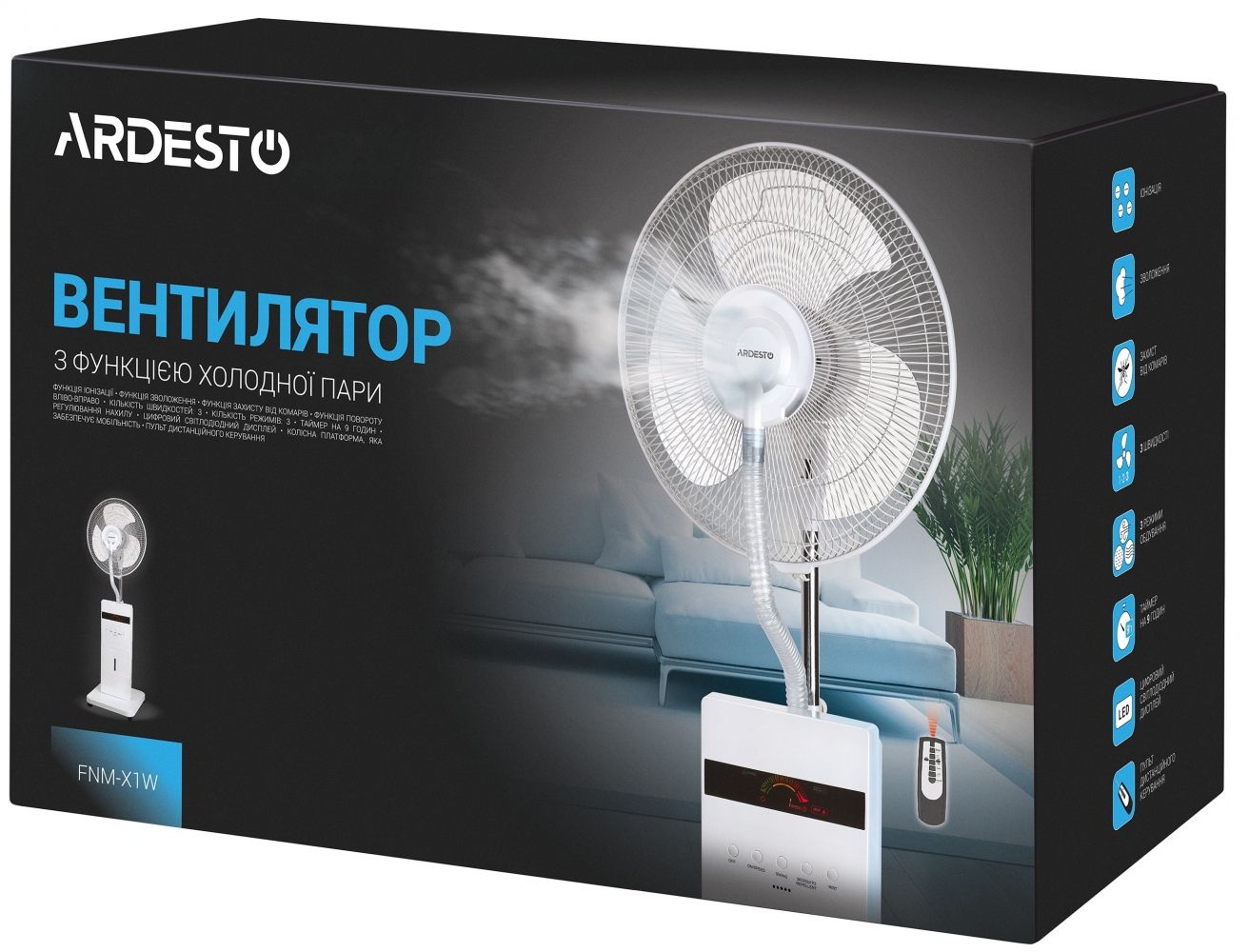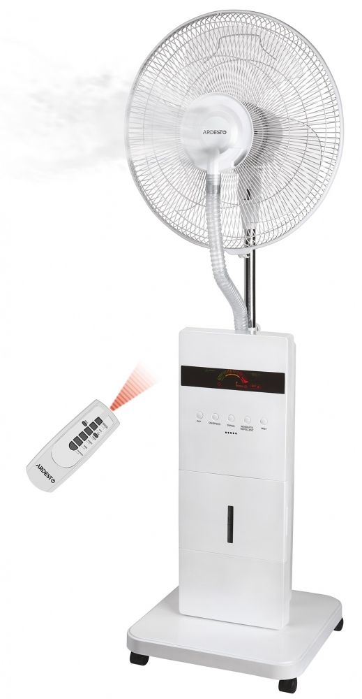 Вентилятор підлоговий білого кольору з функцією зволоження, іонізації і захистом від москітів. Для зручного управління передбачений дисплей з кольоровою індикацією і пульт дистанційного керування. Модель виконана з надійних, практичних і довговічних матеріалів, а в якості підставки використовується платформа з колесами.