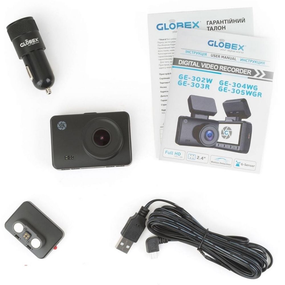 Вагомою перевагою GLOBEX GE-305WGR є наявність в комплекті додаткової камери заднього виду. Вона може фіксувати все, що відбувається позаду автомобіля при русі на дорозі або використовуватися при парковці автомобіля.