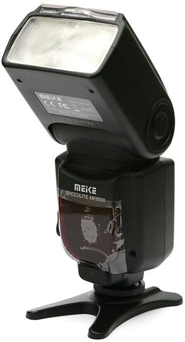 У комплекті є спеціальна підставка, завдяки чому спалах можна встановити як безпосередньо на камеру, так і на будь-яку горизонтальну поверхню. Попри велику потужність, спалах Meike Nikon 950 вживає малу кількість енергії акумулятора, а зручний батарейний відсік дає змогу швидко замінити елементи живлення в будь-яких умовах.