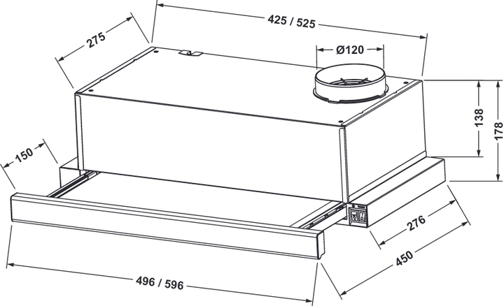 Корпус витяжки ELEYUS BREEZE 470 50 є класичним для телескопічних витяжок ТМ ELEYUS, його висота становить 17.8 мм, що дає змогу легко вбудувати її в стандартний модуль для вбудованої техніки. Витяжка представлена в розмірі 50 см. Сучасний і надійний висувний механізм прикрасить кухню будь-якого стилю й дизайну, а висувна телескопічна панель забезпечить додаткове втягування. У своїй продукції ми застосовуємо високотехнологічні телескопічні напрямні нового покоління, характерні риси яких — нульове зажирення та легкий хід панелі.