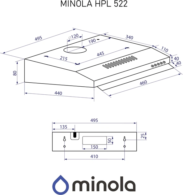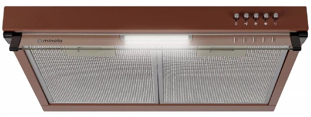 Minola HPL 622 BR— настінна плоска витяжка для кухні з ефективним відведенням або циркуляцією повітря. Модель підходить для квартир, невеликих чи середніх кухонь, забезпечуючи комфорт та чисте повітря під час приготування їжі.