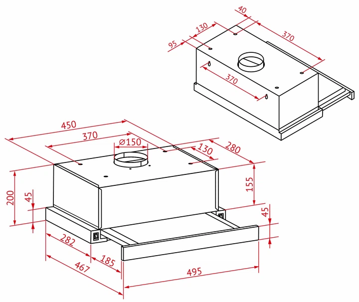 - Характеристики Загальні характеристикиРежим роботиВідведення повітря/рециркуляціяТип освітленняLEDТип фільтраВугільний фільтр (до комплекту не входить) , Алюмінієвий жирозбиральнийОсобливостіЗворотний клапанКомплектаціяЗворотний клапан , Алюмінієвий фільтр , Витяжка , Монтажний комплект , Шнур з вилкою , Інструкція , Гарантійний талонМонтажГарантіяГарантія: 24 місяціКількість швидкостей3Рівень шуму61 дБКількість/потужність моторів1 х 65 ВтДіаметр воздуховода15 смПродуктивність700 куб. м/годТип управлінняГабарити, Колір, ВагаВага7.2 кгШирина495 ммВисота200 ммГлибина297 ммКолірДодатковоДодаткові опціїКласифікаціяТип