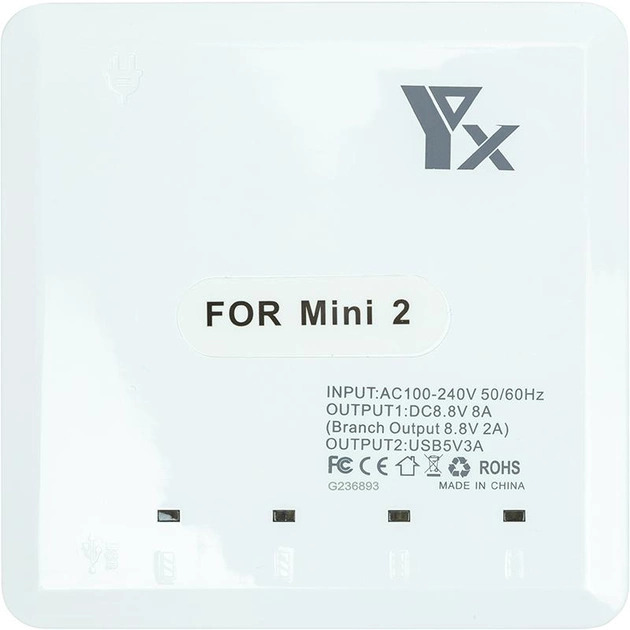 Цей зарядний пристрій заряджає акумулятори: DJI Mini 2, DJI Mini SE, DJI Mini 2 SE Drone. Цей зарядний пристрій може одночасно заряджати 4 акумулятори та 2-USB пристрої. Для повного заряджання 4 акумуляторів DJI Mini 2 потрібно всього 70 хвилин.