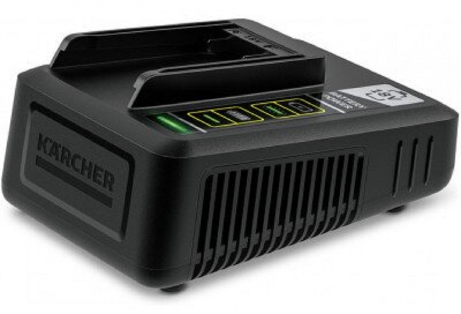 - Заряджає акумуляторну батарею 18 В/2.5 А·год Kärcher Power до 80% за 44 хвилини