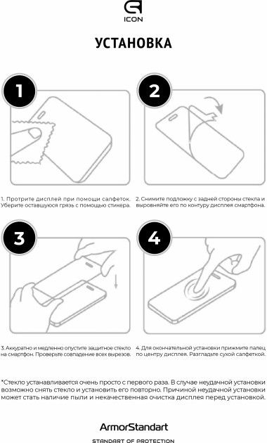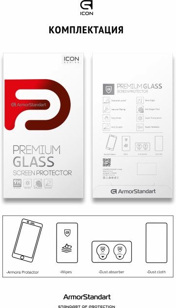 Захисне скло Armorstandart Icon Series має автентичні габарити та товщину на 0,3 мм. Передбачено вирізи під усі датчики, камери та роз'єми.
