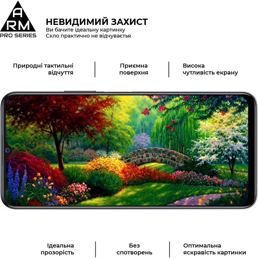 Захисне скло Armorstandart Pro Series має оптимальні габарити й товщину в 0,3 мм. Передбачено вирізи під усі датчики, камери та роз'єми.