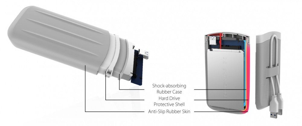 Деталі механізмів жорстких дисків потребують особливого захисту. Armor A65M оснащений таким захистом: він пройшов випробування на ударостійкість американського військового стандарту і забезпечує надійну тришарову захист. Плавні зовнішні форми його корпусу не мають кутів, підвищуючи стійкість до зовнішніх стресів, а гумове покриття корпусу запобіжить подряпини і захистить від випадкового вислизання з рук при зверненні. Крім того, внутрішня система амортизації забезпечує абсорбцію ударів і струсів. Така всебічна захист оберігає внутрішні деталі і механізм Armor A65M від зовнішніх ударів і струсів і робить його кращим захисником вашої інформації.Кращий вибір для моментального збільшення обсягу пам'яті вашого комп'ютера Mac