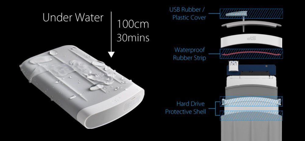 - Єдиний в галузі диск стандарту IP67 водо- і пилонепроникність (Примітка: повністю запобігає потраплянню пилу, а також витримує 30-хвилинне занурення в воду на глибину одного метра)